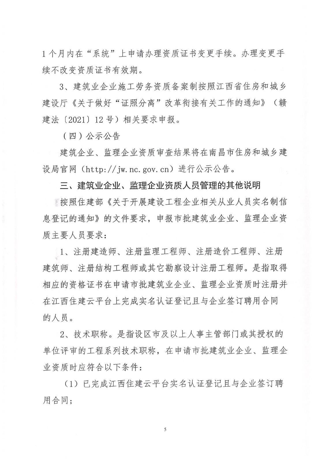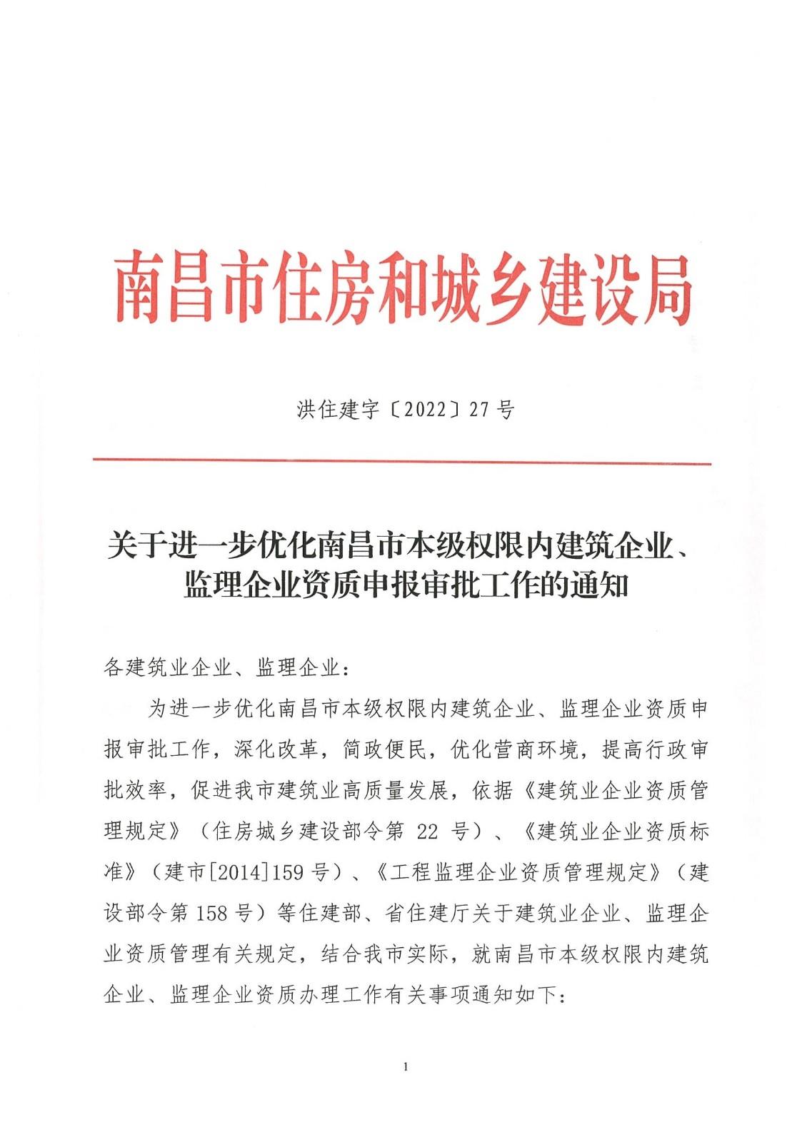 关于进一步做好南昌市本级权限内建筑企业、监理企业资质申报审批工作的通知